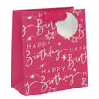 Glick Happy Birthday Script Medium Gift Bag – Pink with Silver Foil