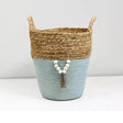 H&S Collection 45.5cm Teal Straw Basket Pot Cover
