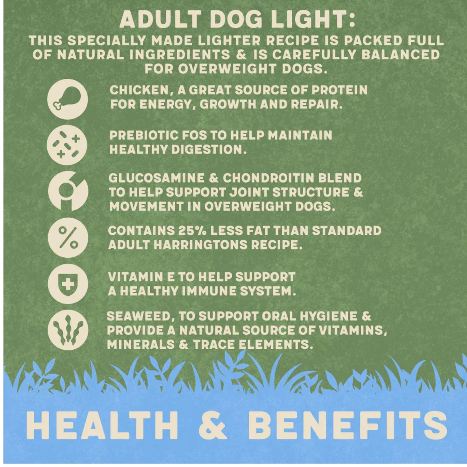 Elevate your dog's dining experience with Harrington's Chicken & Rice Adult Light Dog Food, a meticulously crafted blend designed to support their health and maintain an ideal weight.
