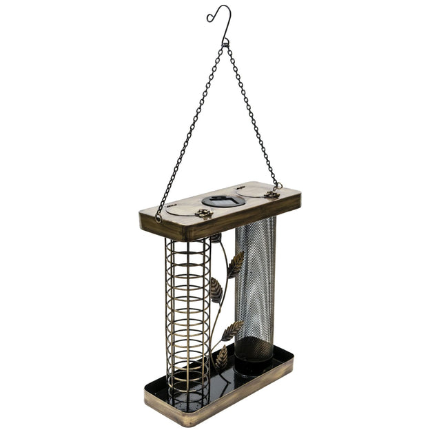 This feeder features two compartments: one for holding seeds and another for fat balls, offering a variety of food options to attract different bird species such as Blue Tits, Robins, and Song Thrushes. Equipped with a solar-powered light, this feeder ensures that birds can access food day or night, enhancing their feeding experience while also adding a decorative element to your garden. Crafted from premium quality materials, this feeder is durable and built to withstand outdoor conditions, making it a reliable choice for bird