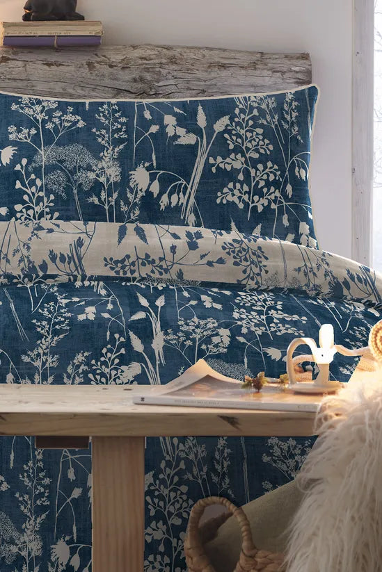 Meet Rohan, where the beauty of nature meets the allure of modern design. Imagine a captivating wild flower silhouette adorning a luxurious blue 100% cotton base – a testament to the perfect union of style and comfort. And when it's time to switch things up, turn it over to reveal the natural reverse with the same mesmerizing print in a soothing shade of blue.