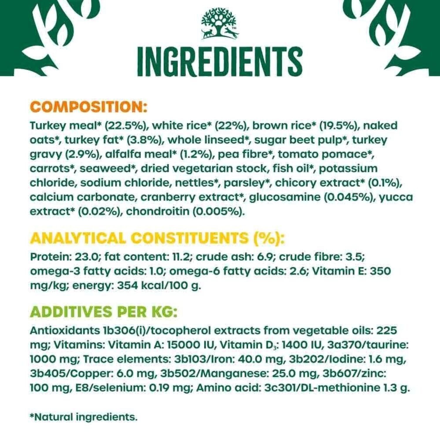 - Single meat protein: Turkey
