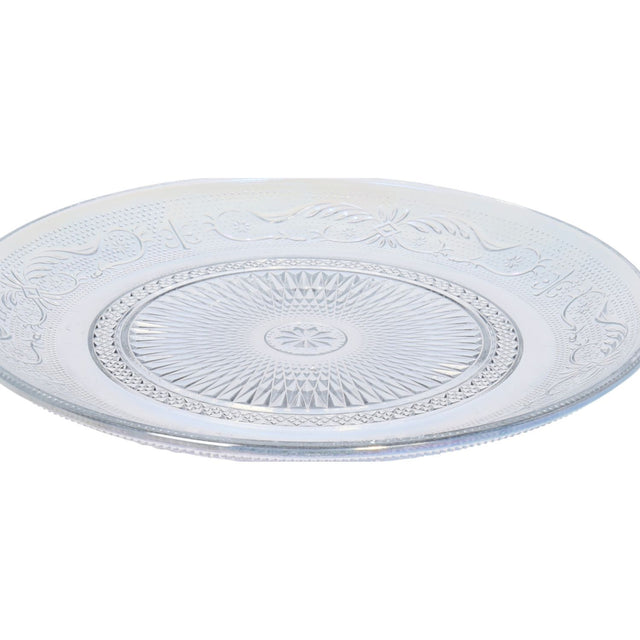 Add a touch of elegance and color to your dining experience with the JK Home Decor Glass Plate in Rainbow Luster. This stunning glass plate features a mesmerizing rainbow luster finish that reflects and refracts light, creating a dazzling display of colours with every use. Ideal for both everyday dining and special occasions, it combines functionality with artistic flair. Whether serving meals or as a decorative piece, this plate brings a unique and vibrant element to your table setting.