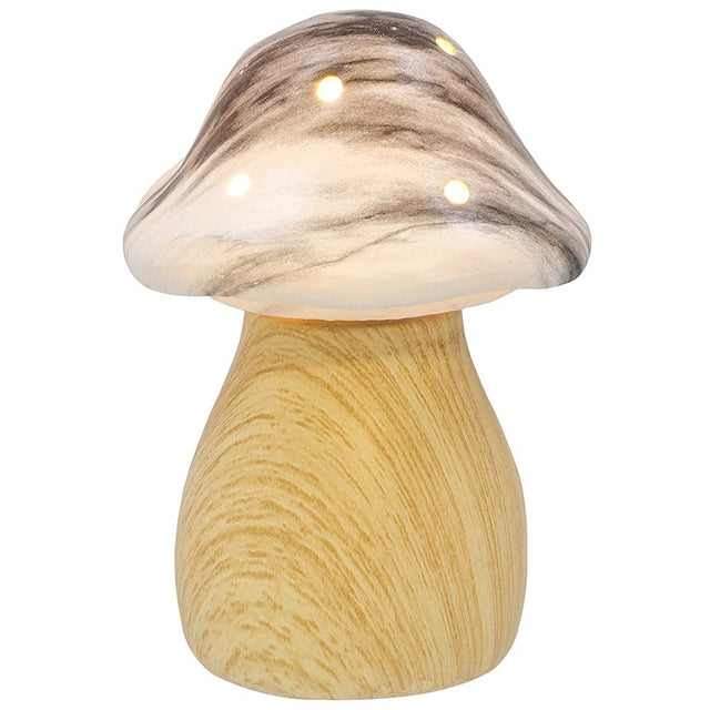 Enhance your home décor with the Joe Davies Natural Small Marble Glow Lamp Toadstool. Made with a wooden stand and ceramic top, this mushroom lamp emits a soft, natural glow through its strategically placed holes. Perfect for mushroom lovers and adds a unique touch to any room.