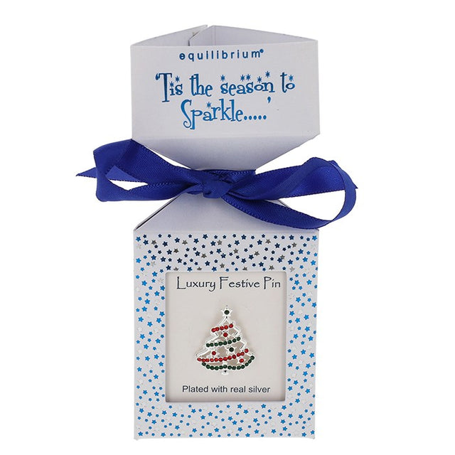 Celebrate the festive season in style with the Equilibrium sparkle Christmas tree pin. This beautifully designed 2cm accessory is silver plated for a refined finish and decorated with delicate sparkling accents that catch the light. Small but eye-catching, it’s the ideal way to bring festive charm to everyday outfits or add a finishing touch to partywear. Whether pinned to a coat lapel, scarf, hat, or bag, this Christmas tree brooch is versatile, durable, and easy to wear. Packaged in a branded gift box, it also makes a delightful seasonal present for friends, family, or colleagues who appreciate elegant festive jewellery.