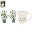 Includes a sturdy ceramic mug featuring a “Garden Dirt” design