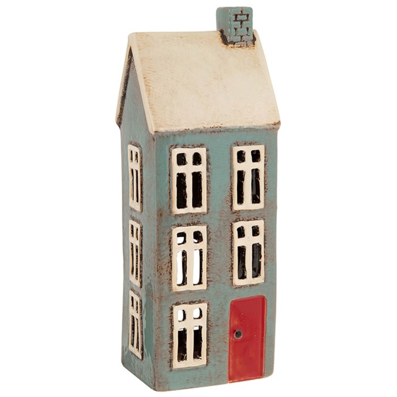 Crafted from high-quality pottery, this tall tealight holder features a detailed house shape with a textured surface that mimics the look of traditional village pottery. The grey colour adds a touch of sophistication and versatility, allowing it to seamlessly blend with various interior styles, from rustic and farmhouse to contemporary.