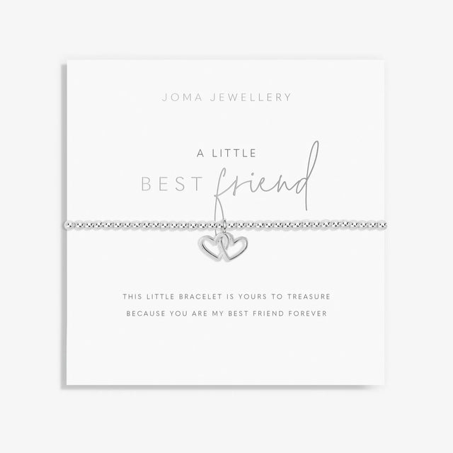 This A Little ‘Best Friend’ Bracelet from Joma Jewellery is a heartfelt way to honour the special person who stands by you through every moment. Featuring a timeless silver-plated beaded bracelet and a delicate double heart charm, it beautifully represents the bond shared between best friends. The bracelet is displayed on a thoughtful presentation card printed with the message, “This little bracelet is yours to treasure, because you are my best friend forever,” making it a ready-to-gift keepsake. Ideal for birthdays, thank-you gifts, or simply to remind your best friend how much they mean to you, this elegant and stackable design suits any style. Crafted in the UK using silver-plated brass, it offers lasting sentiment and everyday wearability.
