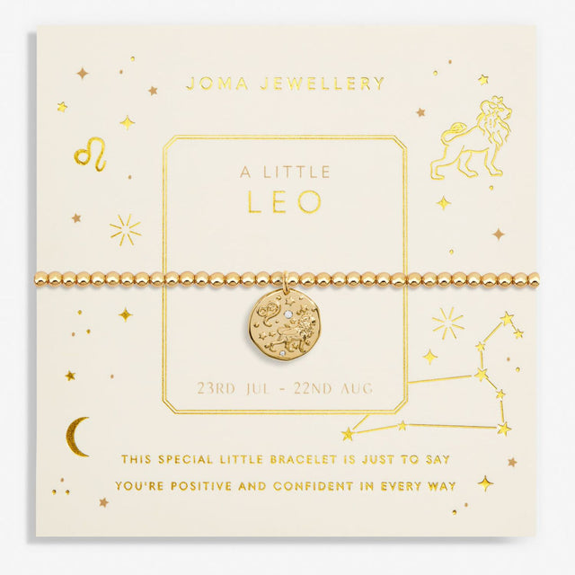 Get ready to make your loved one's wrist stack shimmer this season with this gorgeous new-look Star Sign A Little Bracelets. Threaded with Gold-Plated beads, crowned with a Gold-Plated disc, dotted with the Leo Star Sign in Cubic Zirconia crystals, and wrapped around a pretty zodiac-printed card, this charming Star Sign A Little 'Leo' Bracelet in Gold-Plated makes the most wonderful gift for celebrating a loved one's special day.