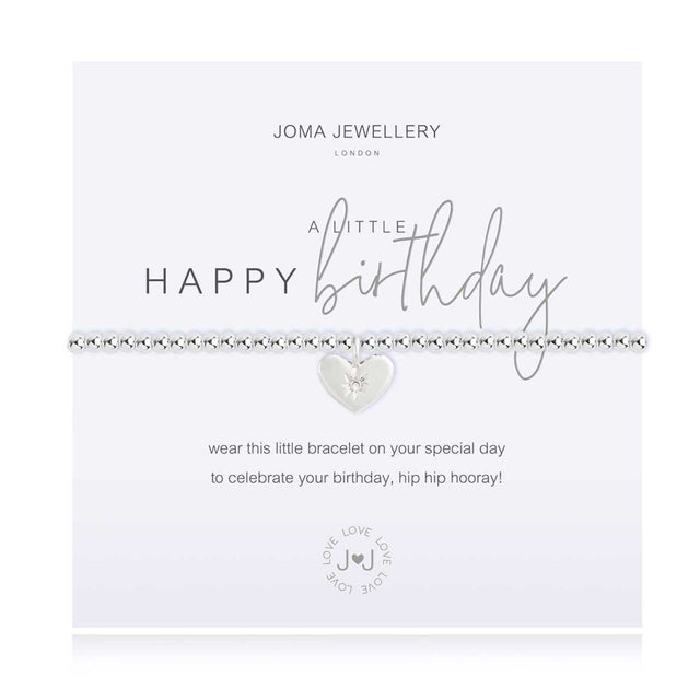 Say Happy Birthday in the prettiest way possible with this 'A Little' Happy Birthday Bracelet. Threaded with stunning silver-plated beads and decorated with a dainty charm, this gorgeous design will soon become her everyday staple. Paired with a heartfelt poem and accompanied by one of the signature Joma Jewellery cards, this little bracelet makes for the most thoughtful birthday present.