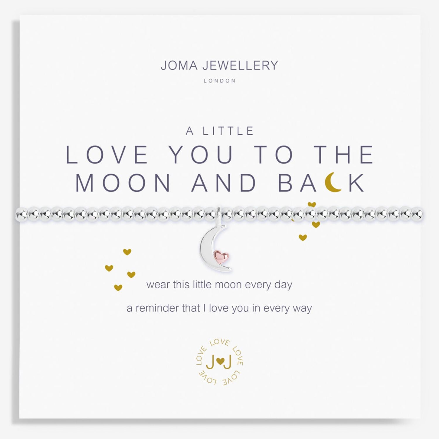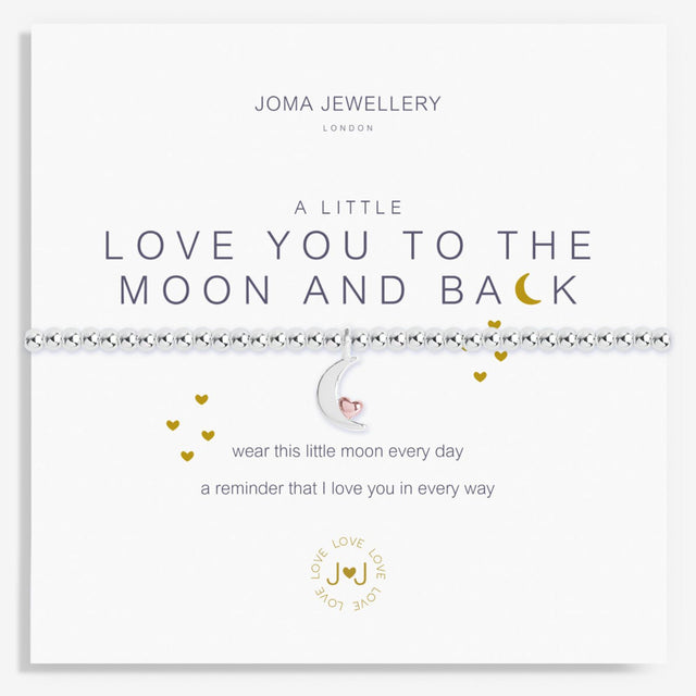 A Little ‘Love You to the Moon and Back’ Bracelet. Timeless and completely giftable, this silver-plated stretch bracelet is designed to fit every wrist, and holds a solid silver-plated heart charm. Presented on a card that’s stamped with the sentiment and poem.