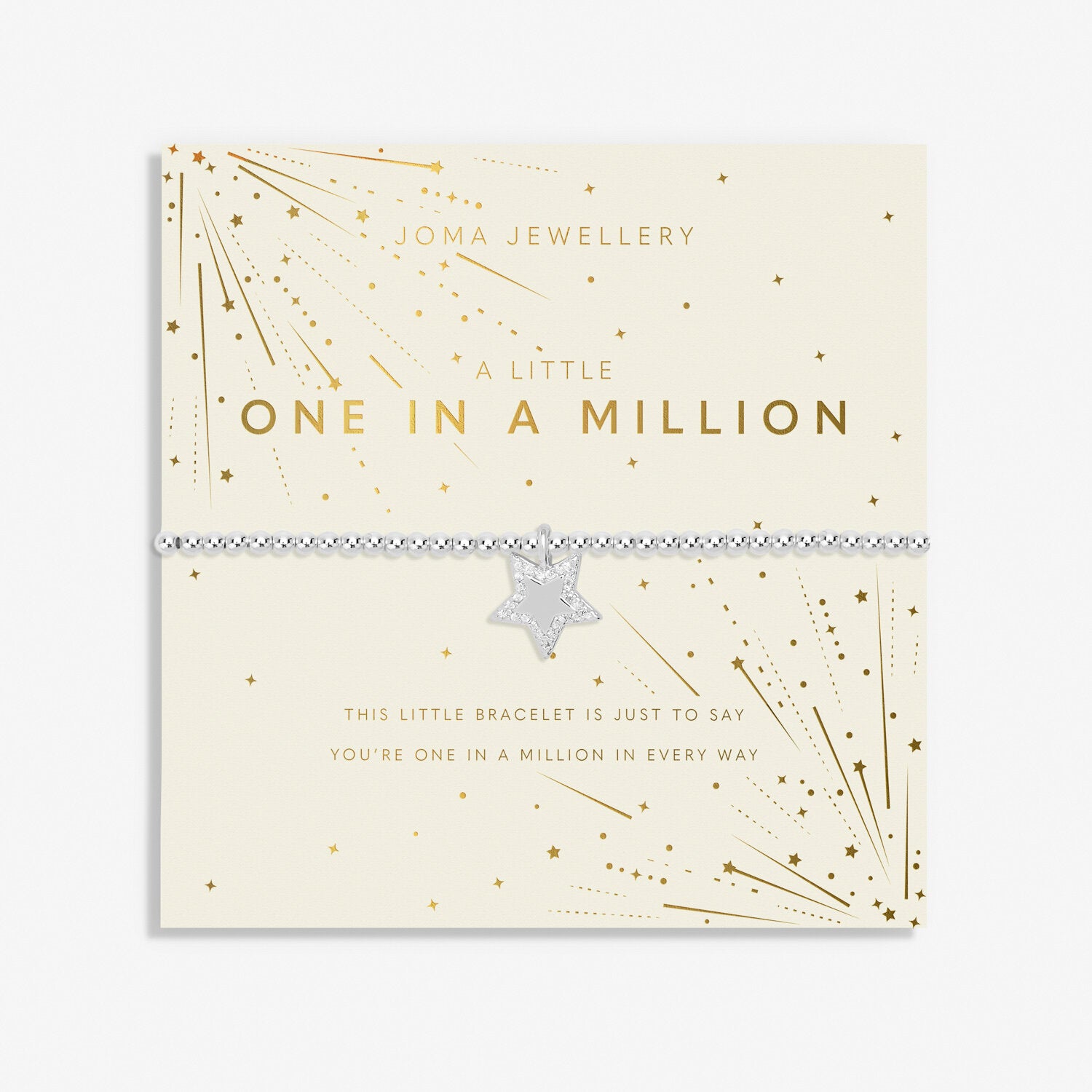 Capture every magical moment with your loved ones this festive season with Christmas A Little Bracelets! Made to last and be loved for a lifetime, our Christmas A Little 'One In A Million' Bracelet In Silver Plating is threaded with a classic silver-plated beads and decorated with a pretty star charm to represent the magic of the season. Wrapped around a shimmering starburst-print card and framed by a sweet poem, it's sure to make a wonderful stocking filler or under-the-tree treat.