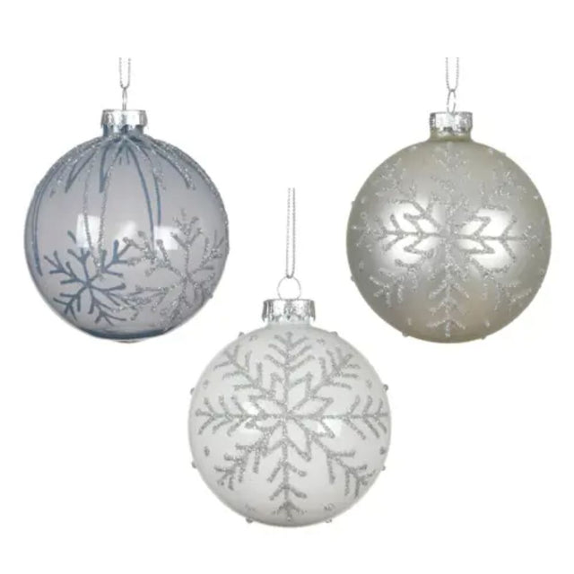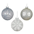 Kaemingk 8cm Transparent & Silver Glass Bauble with Snowflake Design – Christmas Decoration (Choice of 3)