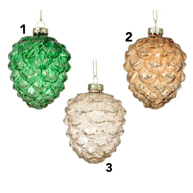 Kaemingk Transparent Glass Acorn Bauble with Glitter – Elegant Christmas Decoration (Choice of 3)