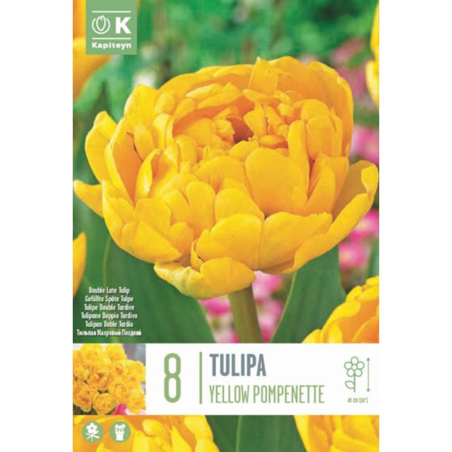 Kapiteyn 8 Tulip Yellow Pompenette Bulbs – Elegant Double Late Spring Tulips