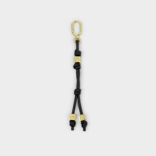 Elevate your everyday accessories with the Katie Loxton Gia Bag Charm in Black. This elegant keyring is crafted from soft vegan leather in a classic black shade that pairs effortlessly with any handbag or outfit. The statement knotted design brings a modern, textured element, while the gold-tone hardware and branded charm add a luxurious touch. Designed to be both beautiful and practical, it easily clips onto keys, tote handles, backpacks, or crossbody bags. Whether you're looking for a sleek personal accessory or a thoughtful gift, this charm ticks all the right boxes.