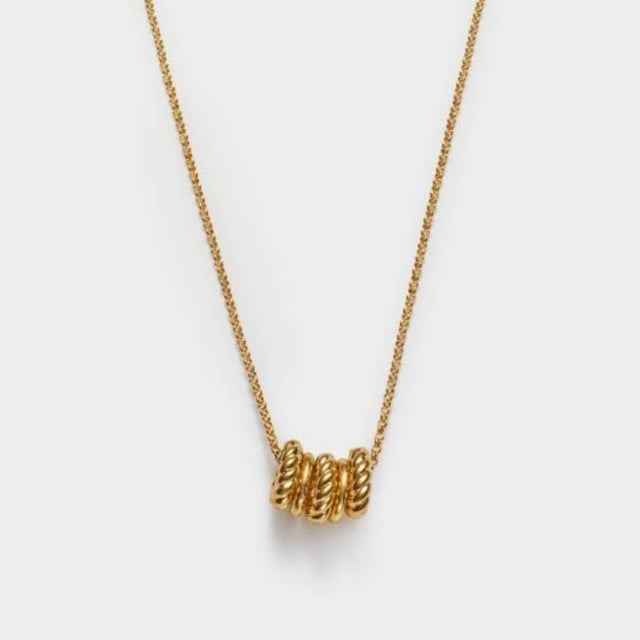 The Katie Loxton Laia Waterproof Gold Necklace is a stylish and versatile accessory, perfect for everyday wear or special occasions. Featuring a delicate rope chain with textured ring pendants and a durable 18K Gold PVD coating, this necklace is waterproof, sweat-proof, and life-proof, making it ideal for layering with the matching Laia bangle and earrings.