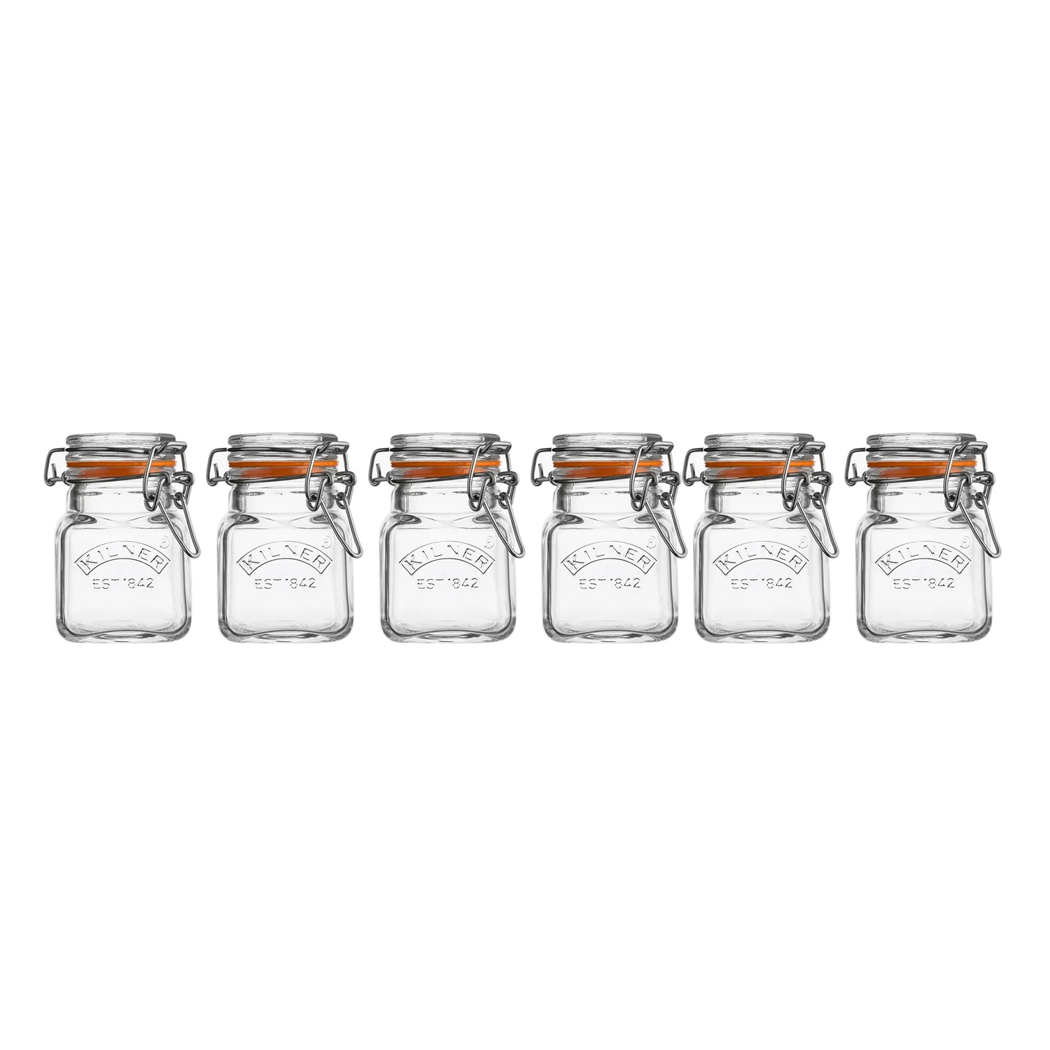 Set of six 70ml clip-top spice jars ideal for herbs, spices, and seasonings