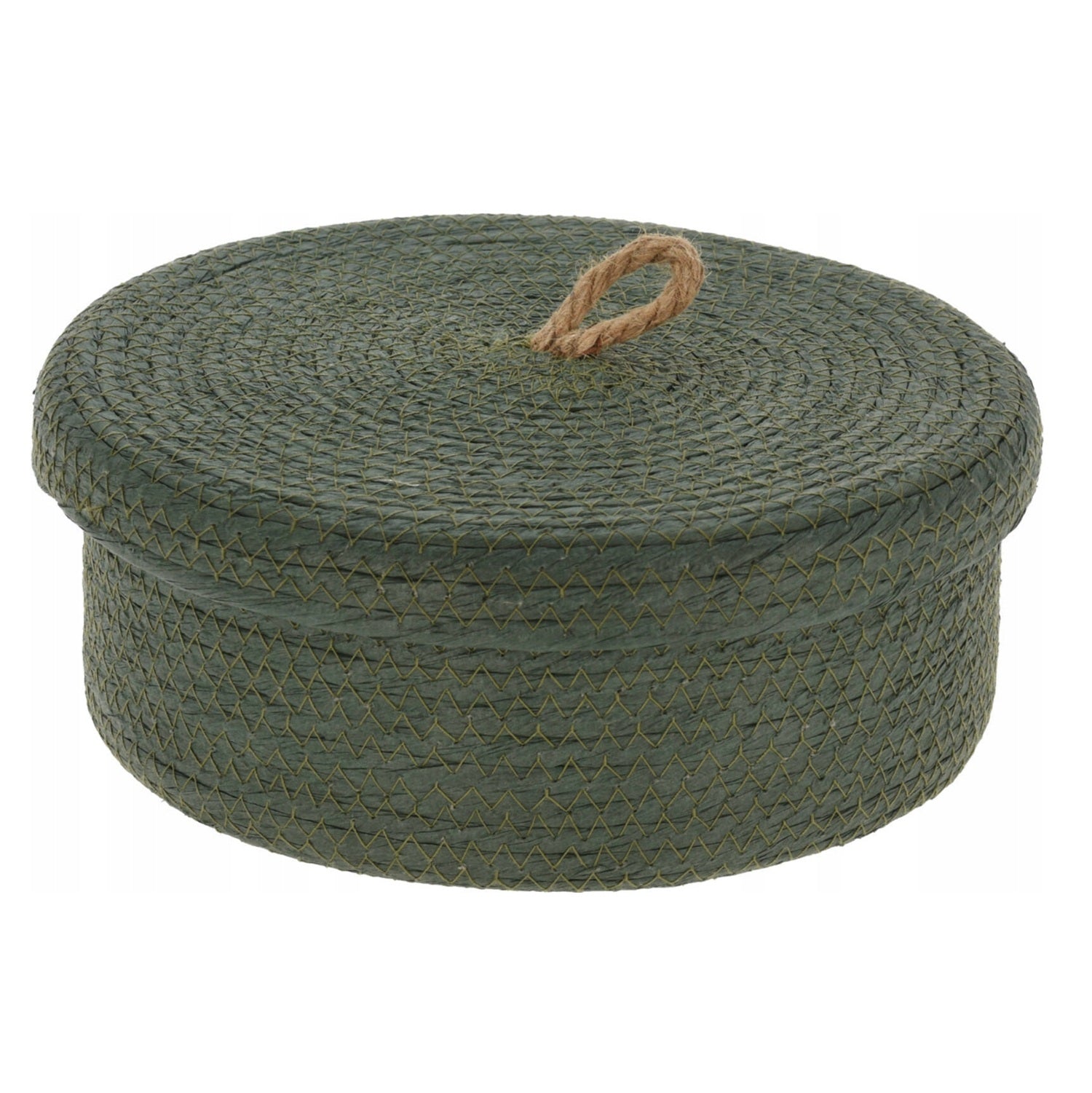 Organise your home in natural style with the Koopman 26cm Green Jute Storage Basket, featuring a practical loop handle for easy carrying.