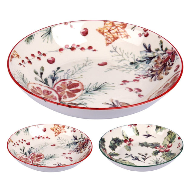 Serve festive treats in style with the Koopman Porcelain Christmas Joy bowl, available in two elegant seasonal designs featuring holly leaves or a potpourri-inspired pattern. Perfect for snacks, desserts, or table décor during the holidays.