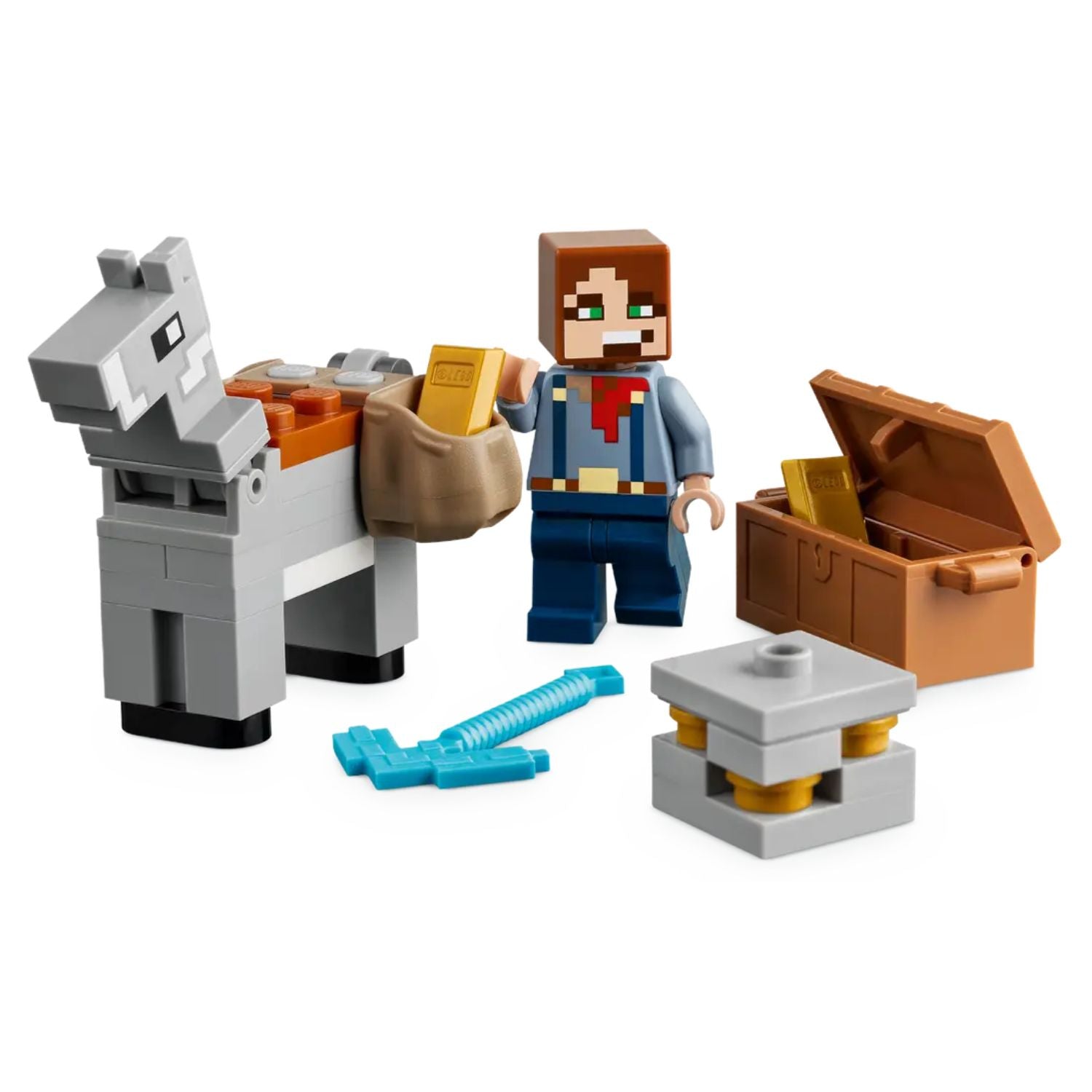 - Minecraft® figures – Includes the Badlands Explorer, a Creeper™, cave spider, husk, baby rabbit, donkey with saddlebags, 2 slimes and a bat whose wings fold up so it can hang upside down