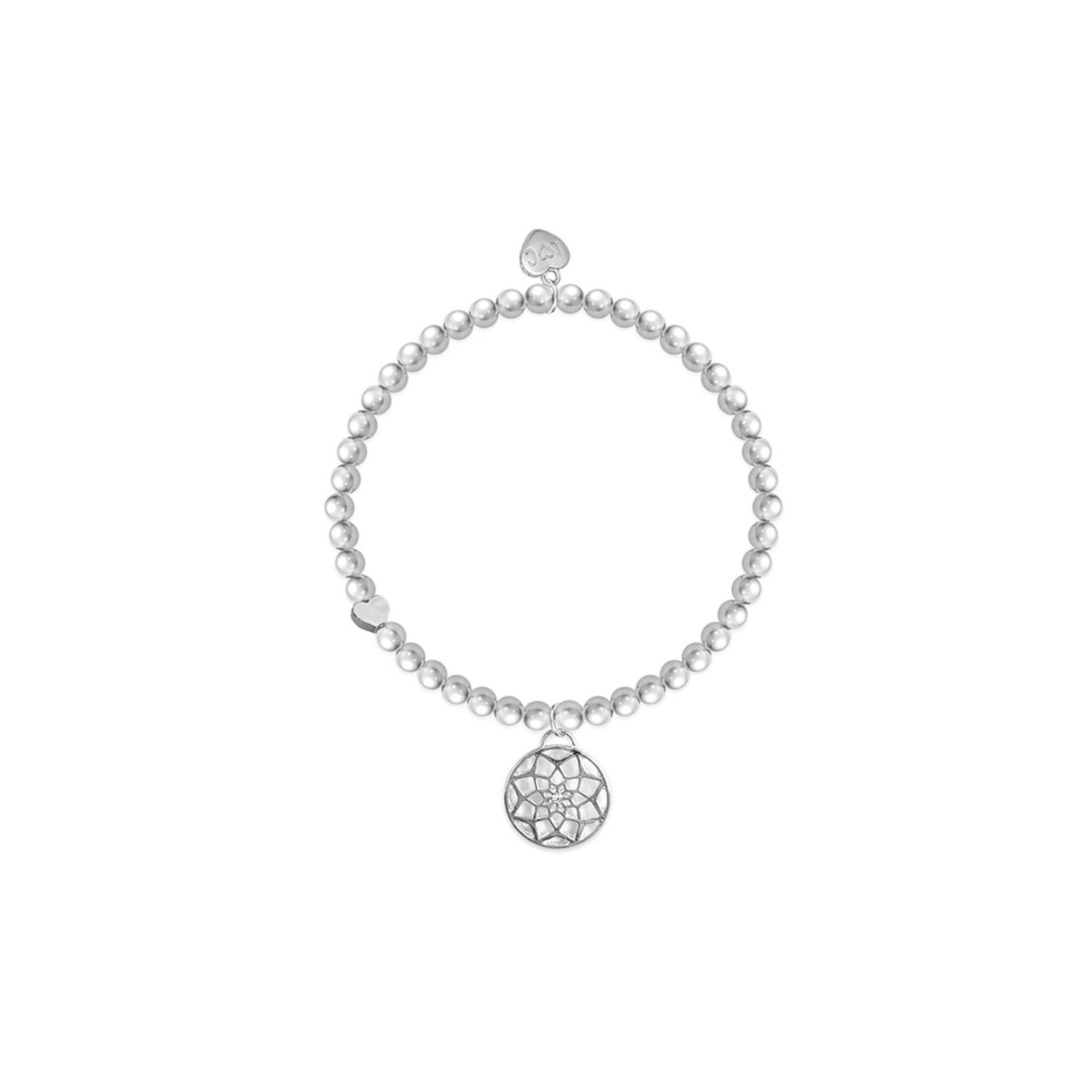 Capture dreams and aspirations with our elegant silver plated bracelet featuring a dream catcher hanging charm. This bracelet is crafted on a 5mm beaded stretch band, making it a meaningful gift to inspire and uplift.