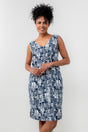 The Lily & Me Navy Laynie Birch Dress features a white dress with a stylish navy leaf all over print, perfect for a summer wardrobe. Made with breathable and lightweight fabric, this dress is ideal for achieving a casual and comfortable look.