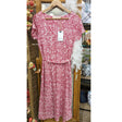 Short sleeves, a waist tie and finishing mid calf. Made from soft organic cotton jersey with a bespoke Lily & Me print, style with pumps, sandals and knitwear for the perfect weekend look.