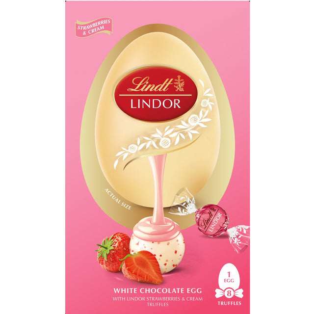 Lindt LINDOR 260g Strawberries & Cream White Chocolate Easter Egg