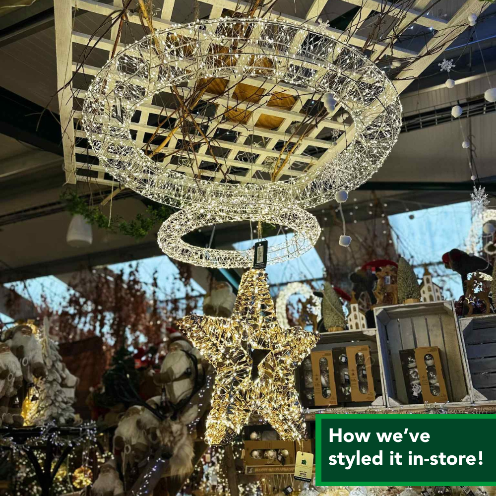 The Lumineo LED Star Decoration is designed to elevate your Christmas display with timeless elegance. Measuring 60cm in width, this gold-framed star is lit with 720 warm white micro LEDs, producing a brilliant festive glow that captures the magic of the season.