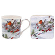 Macneil Traditional White Christmas Robin Mug & Coaster