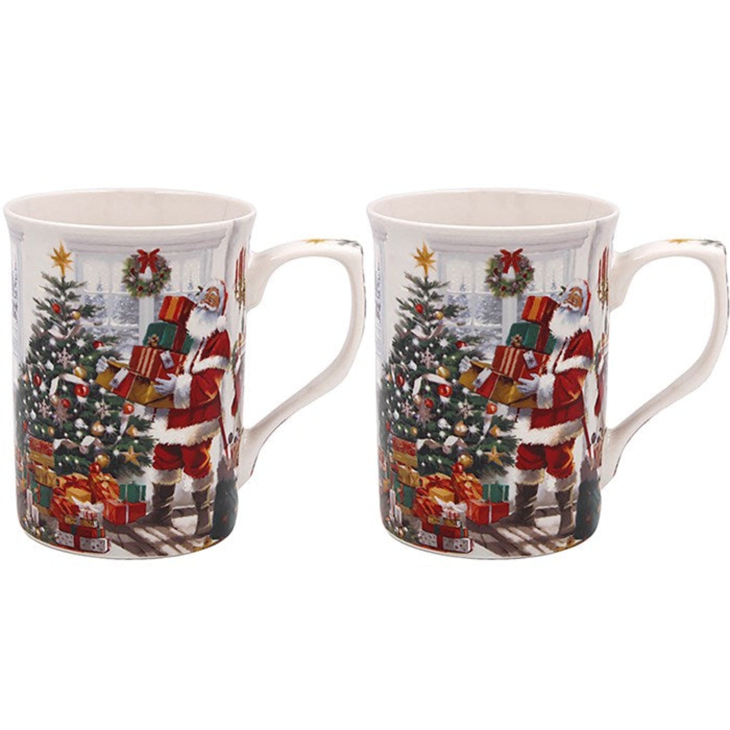 Macneil Traditional White Christmas Santa & Tree Mug Set of 2