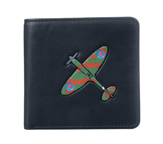 This slim leather wallet is lightweight and finished with a hand-painted spitfire plane.