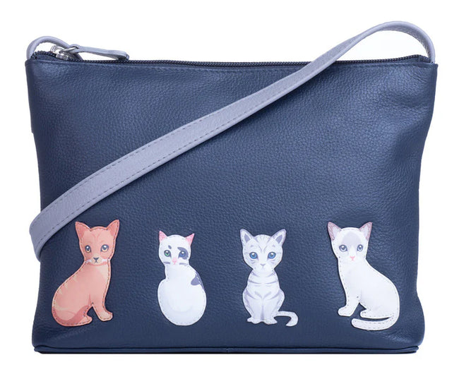 Mala Leather 23cm Navy Best Friends Sitting Cats Midi Cross Body Bag - 7225 65