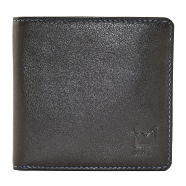Mala Leather Black/Blue Hudson Slim Wallet with Coin Pocket