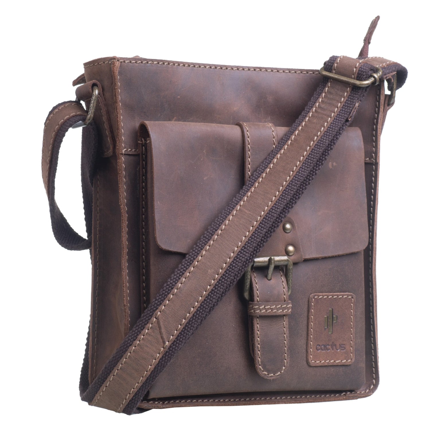 Mala Leather Brown Cactus Leather Front Pocket Cross Body Bag