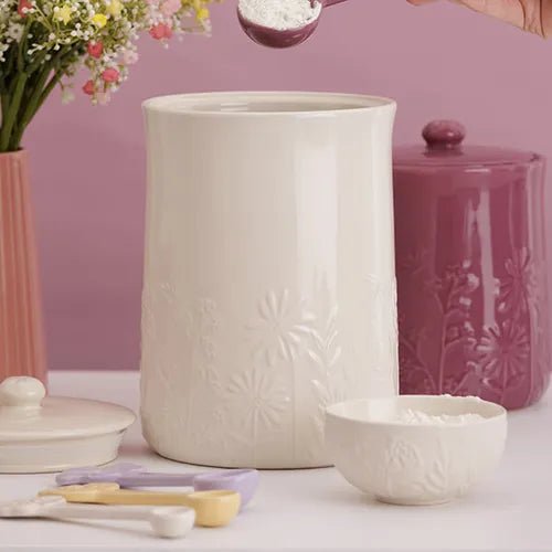 Store your kitchen essentials in style with the Mason Cash 2.5L In The Meadow Storage Jar. Made from durable stoneware, this elegant jar features an embossed floral design and a secure, airtight lid to keep contents fresh. Ideal for tea, coffee, sugar, or dry ingredients, it adds a touch of rustic charm to your kitchen counter.