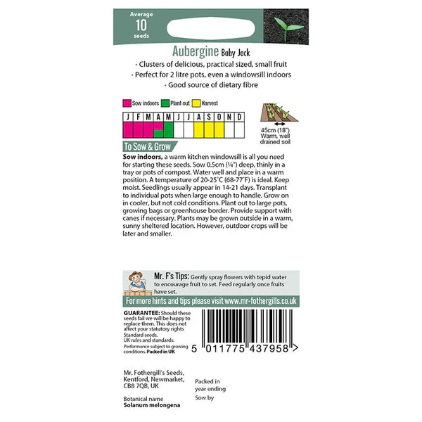 Mr Fothergill's Compact Aubergine F1 Seed is a must-have for anyone looking to grow their own delicious and nutritious aubergines, even in limited spaces.