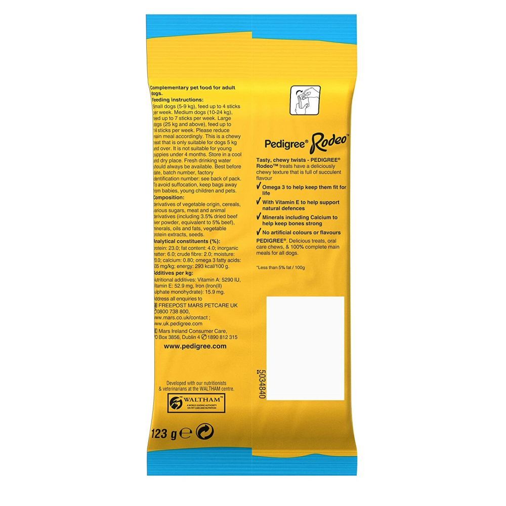 Pedigree Rodeo 123g Dog Treats with 7 Beef Sticks