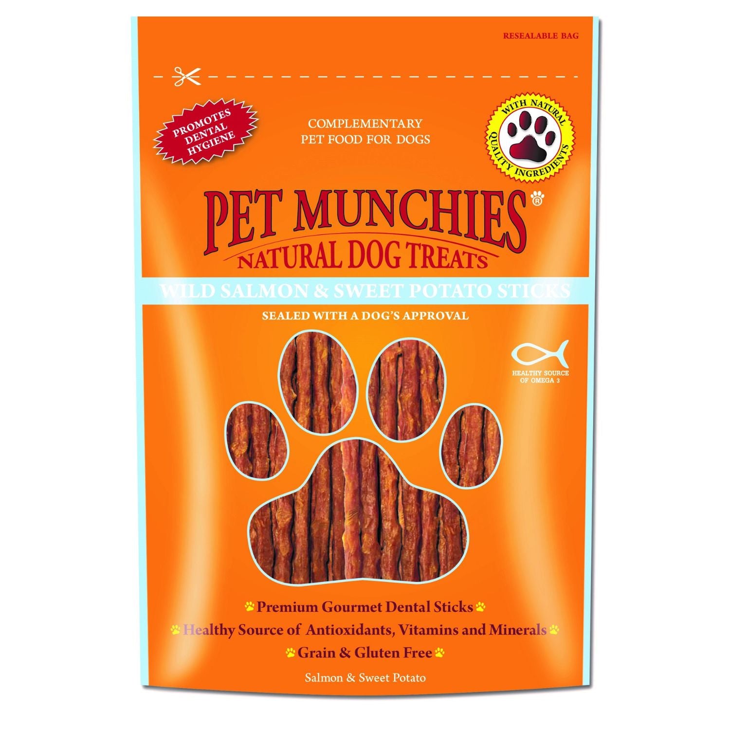 Pet Munchies Wild Salmon & Sweet Potato Dental Sticks are the perfect combination of flavour and functionality, offering your dog a tasty treat while helping to maintain their dental health. Ideal for rewarding your dog or as an everyday snack!