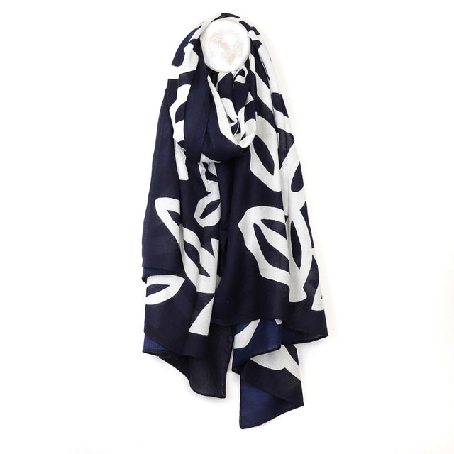 POM Bamboo Navy & White Leaf Silhouette Print Scarf
