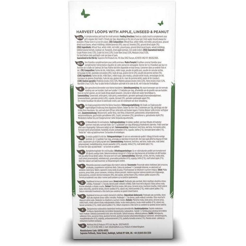Contains a natural source of Omega 3 & 6, for healthy skin and glossy coat. Also, with tasty apple, peanut and linseed and with no added sugar or artificial colours, ideal for small pet omnivores.