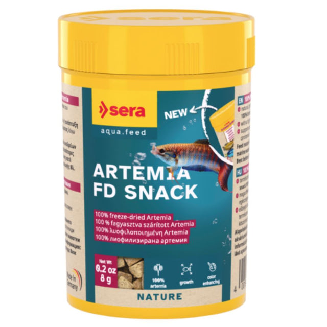 Sera Artemia FD Snack is a premium natural treat designed for all ornamental fish and invertebrates in both freshwater and marine aquariums. Consisting entirely of small brine shrimp, this freeze-dried food provides an excellent source of easily digestible protein, making it ideal as a supplement to a balanced daily diet.
