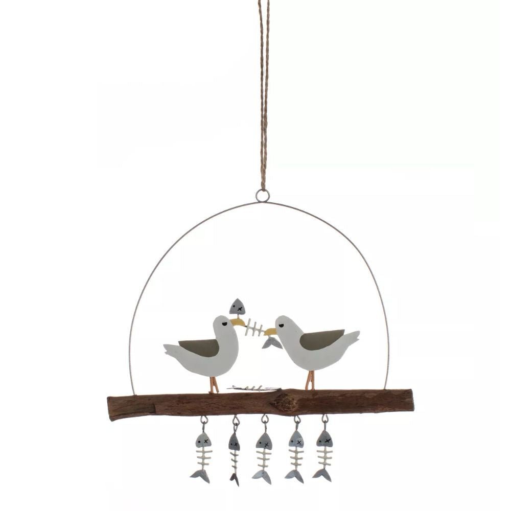 Shoeless Joe 15cm Metal Seagull and Fish Driftwood Hanger