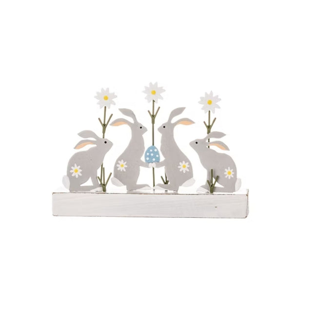 Shoeless Joe Bunnies with Daisy Block Decoration