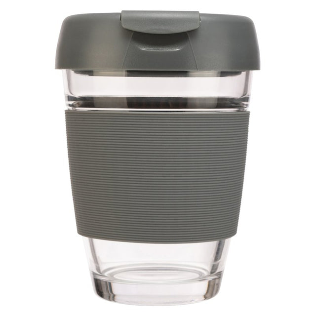 The Siip Glass Travel Mug in grey is the perfect solution for those who don't have the luxury of time to savour a cup of coffee in the mornings. This sleek and stylish on-the-go companion features a flip-top lid and a silicone sleeve, making it not only an aesthetically appealing choice but also an environmentally responsible one.