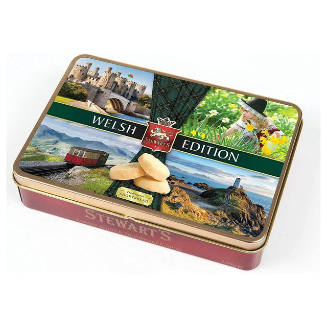 Celebrate the fusion of Scottish baking tradition and Welsh heritage with Stewart's 150g Scottish Shortbread Rounds, beautifully presented in the Welsh Edition Tin. Embossed with iconic Welsh symbols and designs, this collectible tin showcases the vibrant culture of Wales while offering the exquisite taste of classic Scottish shortbread. Crafted with care, these crumbly, buttery shortbread rounds deliver a melt-in-your-mouth experience with every bite, evoking the warmth and beauty of both Scotland and Wales. Perfect as a thoughtful gift or a personal indulgence, this tin brings a touch of Welsh charm to the timeless pleasure of traditional shortbread.