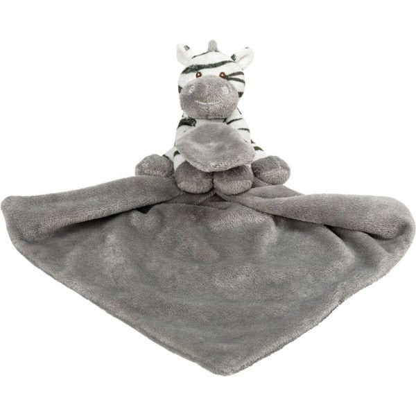Super soft boa blankie with Zooma Zebra plush with rattle Dimensions: 30cm Sq; 12cm H sitting Care: Hand wash, air dry, from birth upwards, includes rattle