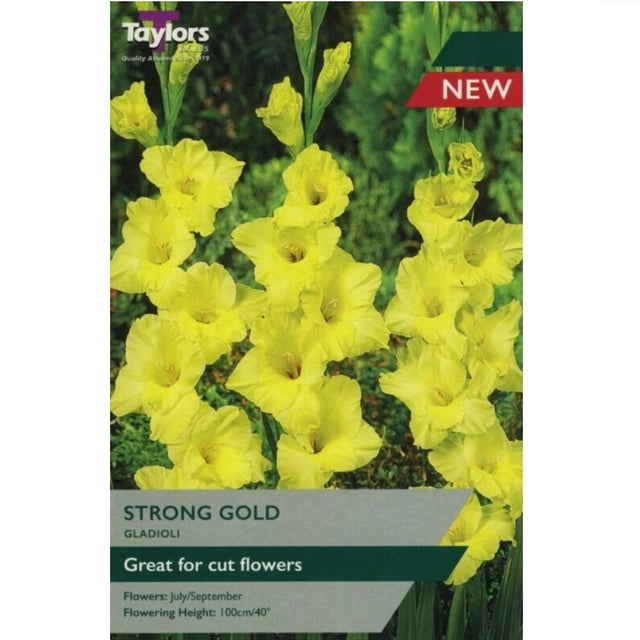 The Taylors Gladioli Strong Gold is a must-have for anyone looking to add a touch of vibrant color and elegance to their garden, with its striking golden blooms standing out beautifully in any landscape.