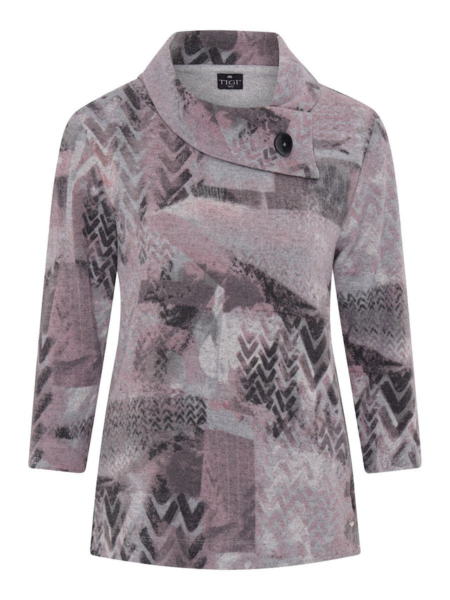 TIGI 10/12 Grey Blur Print Split Cowl Neck Top - T25-11A